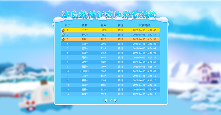 BCI技能赛青少年组 “冰岛救援”赛脑力争霸赛排名榜