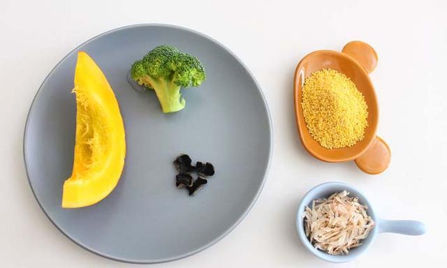 南瓜60 克西兰花1 朵虾皮3 克小米25 克木耳4 片