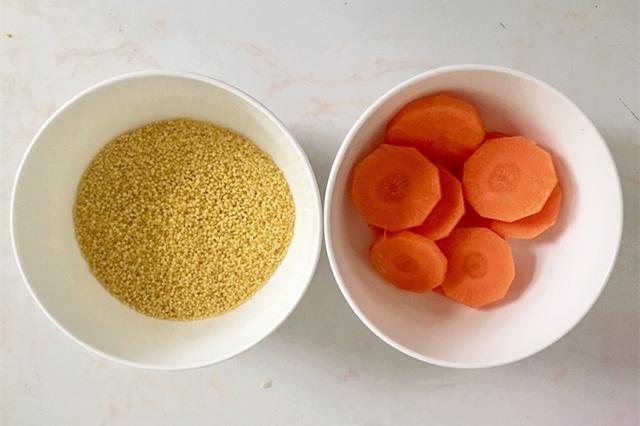 胡萝卜和小米都是帮助刚添加辅食的宝宝补铁的好食材,易消化,且能促进宝宝胃肠蠕动,改善排便状况,增加食欲。