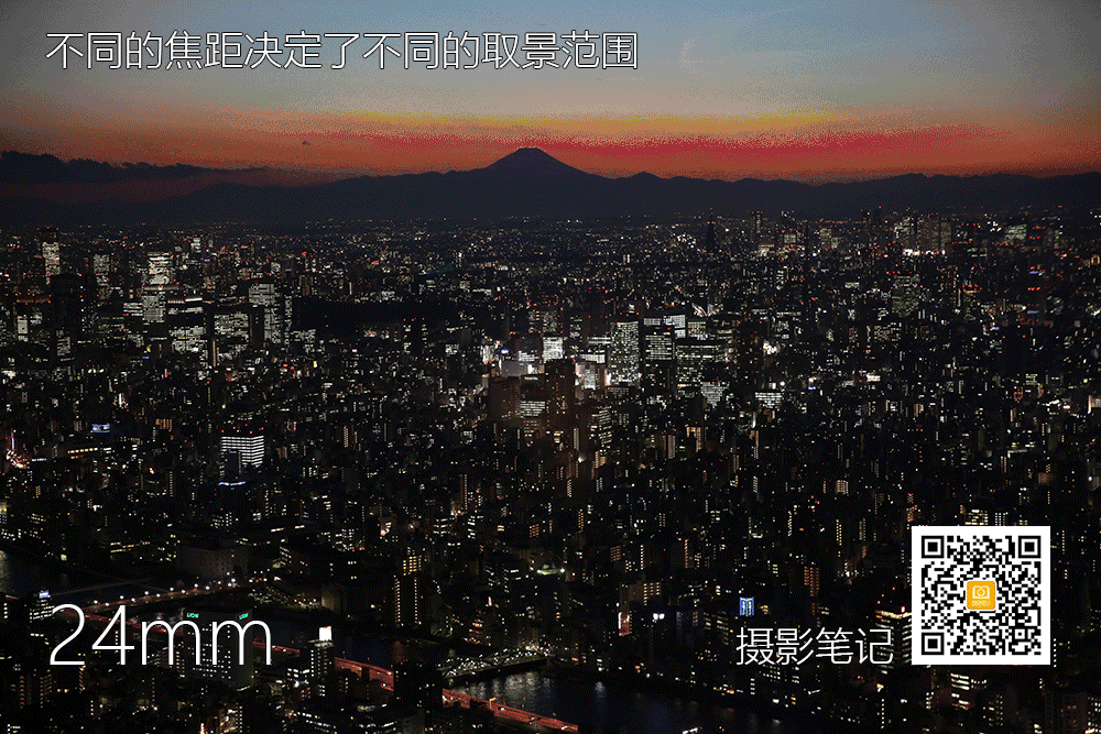 这个数字越小,我们叫焦距越短,我们的视野就越宽,取景范围就越广,画面中容纳的景物也就越多,但是每个景物在画面中占的面积就越小。