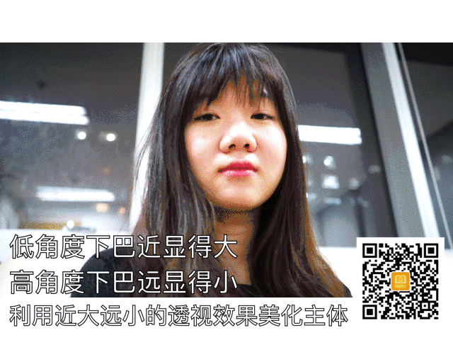 就是因为这个时候,眼睛离相机近,近大。下巴离相机远,远小。