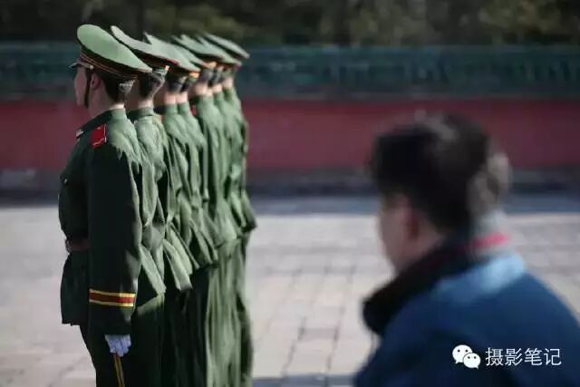 再看这张图,有没有觉得这张图的纵深感和上面的图差不多?但是从常识能判断这张图男人到士兵的距离要远远大于上面的老人和妇女之间的距离的。这就是老法师讲的“景物似乎拉近了”。这是155mm焦距拍摄的。