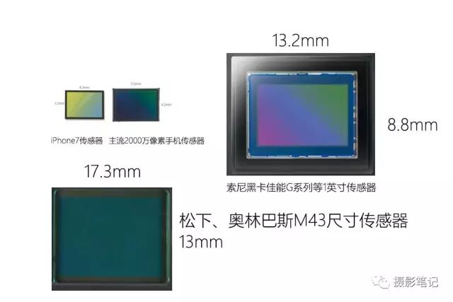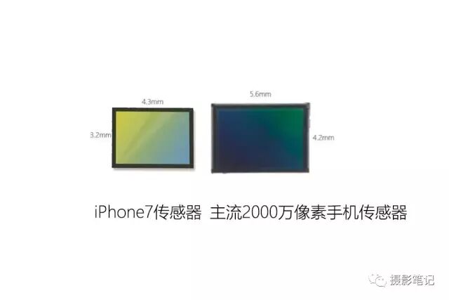 典型代表就是iPhone的了。从iPhone5s时代开始到iPhone 7,iPhone都是1/3英寸的传感器。简单说就是差不多为4.3mm×3.2mm的大小。
