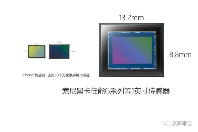 我们和比较小的相机传感器相比。1英寸传感器目前普遍用户高端卡片机内,边长是13.2mm×8.8mm。