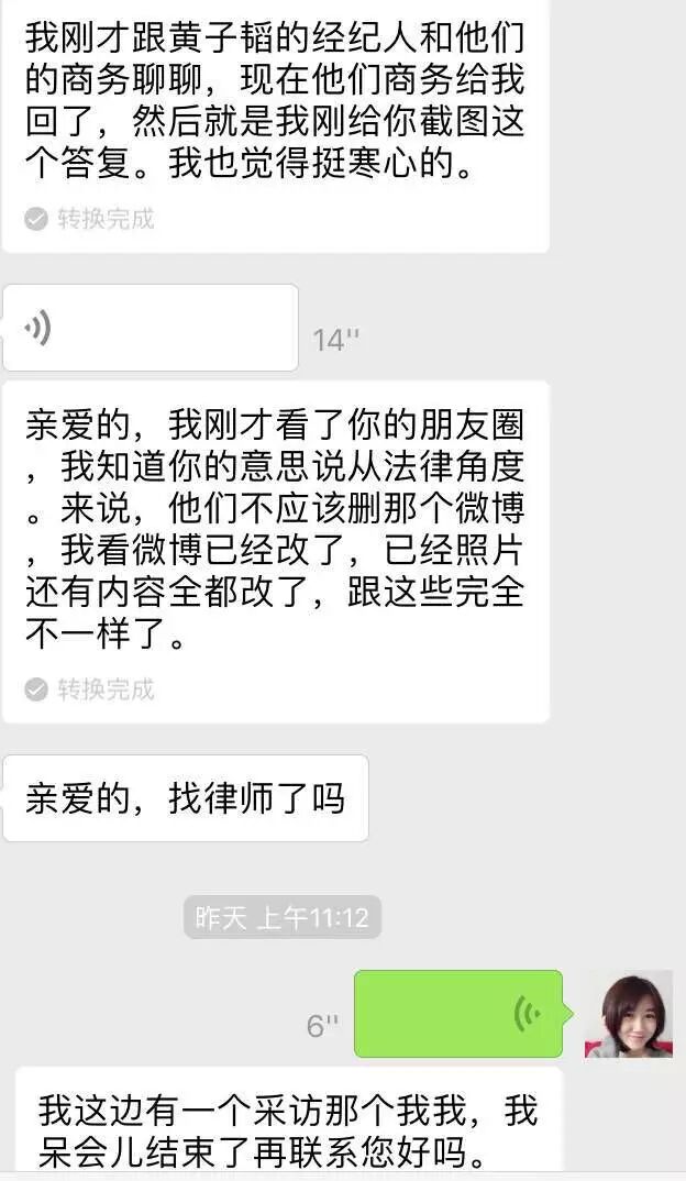 昨天,叶子找到我,有人告诉她,黄子韬的道歉微博又改了……