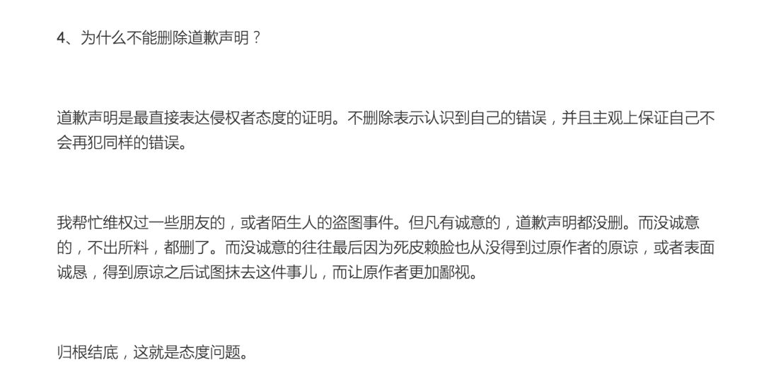 我在上一篇文章里说了,盗图之后道歉,如果道歉声明删了,就是没诚意。我保证他没意识到自己的错误。