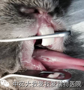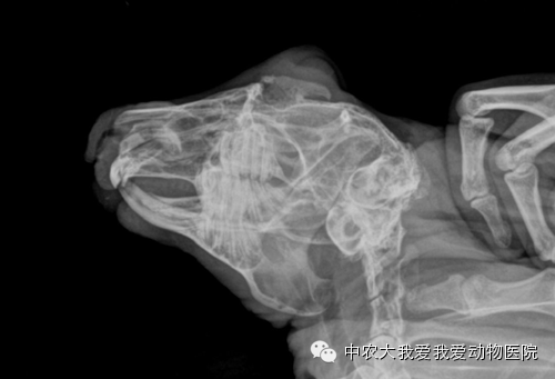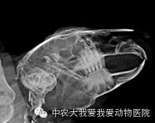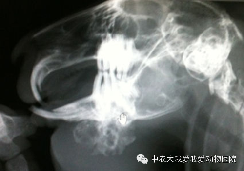 6、下切齿牙根过长引起兔子下颌脓肿,严重者下颌溶解。