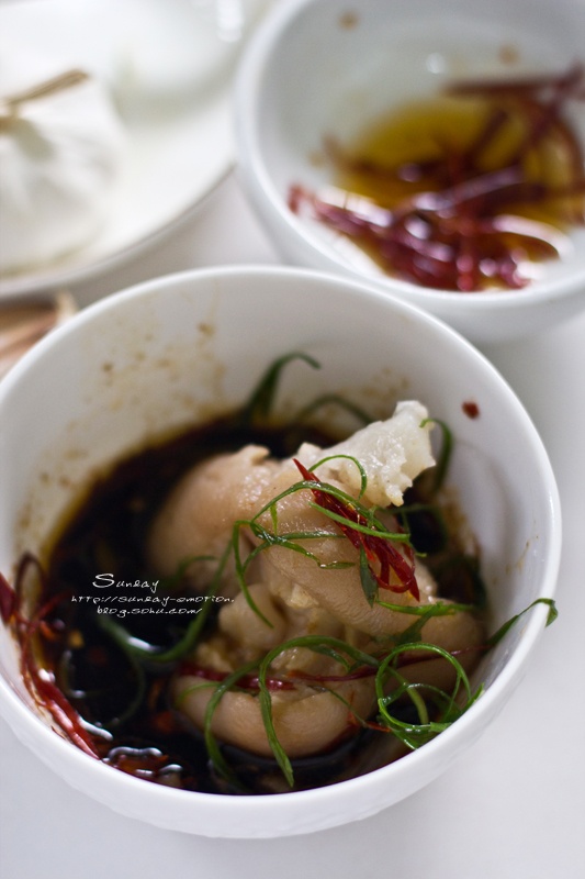 我这里用了:生抽,陈醋,油炸干辣椒丝,香葱丝,麻油,蒜蓉,白糖,鸡精。