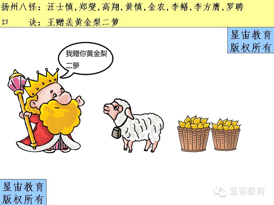 扬州八怪:汪士慎,郑燮,高翔,黄慎,金农,李鳝,李方膺,罗聘