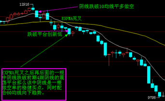 综上所述,为了克服上述缺点,我们在此介绍EXPMA指标,该指标的主要优势是:对移动平均线进行了取长补短,同时又具备了KDJ指标和MACD指标的"金叉"和"死叉"等功能。因此该指标具有较高的成功率和准确性,对于个股的抄底和逃顶提供了较好的点位,是投资者采用中短线决策的好帮手。