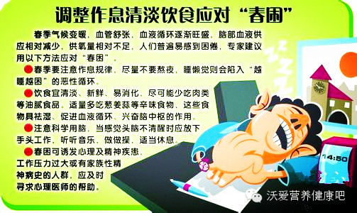 一到春天,人就特别容易犯困,医学上称为“春天疲劳症”,也就是我们俗称的“春困”。虽然“春困” 不是病,可它给我们带来的麻烦也不少。那么怎样来预防和消除“春困”现象呢?