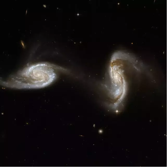 阿普194,两个星系之间出现了一座“星桥”。来源:哈勃