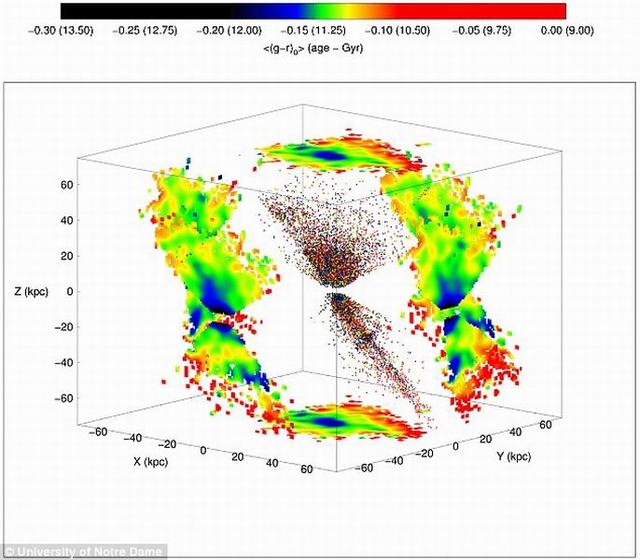 目前,研究人员在银河系光环中发现13万颗以上恒星,并依据它们的颜色识别出它们的年龄,证实它们是银河系中心最古老的恒星。