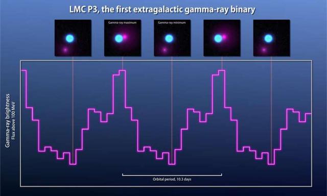 伽玛射线双子星系统之所以意义重大是因为伽玛射线的输出随着每个轨道的不同会发生显著变化,有时甚至会随着时间产生变化。这些变化有助于我们了解其他伽玛射线源的发射过程。这类稀有的系统要么包含了中子星,要么包含有黑洞,并且以伽玛射线的形式来辐射能量。LMC P3是在伽玛射线波段、X射线波段、无线电波段以及可见光波段中所能观测到的最明亮的系统。