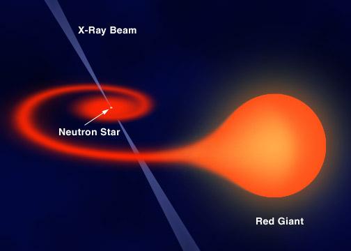 X射线属于高能光子,集中了脉冲星绝大部分能量,易于小型化设备探测与处理。相反,射电波需要巨大的接收天线等设施,在空间飞行器上无法搭载。上图为X射线双星系统示意图。