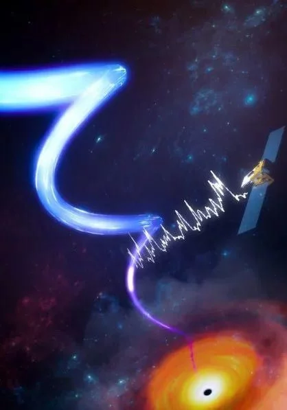 资料图:“慧眼”卫星发现离黑洞最近的喷流产生的准周期调制信号的艺术想象示意图。