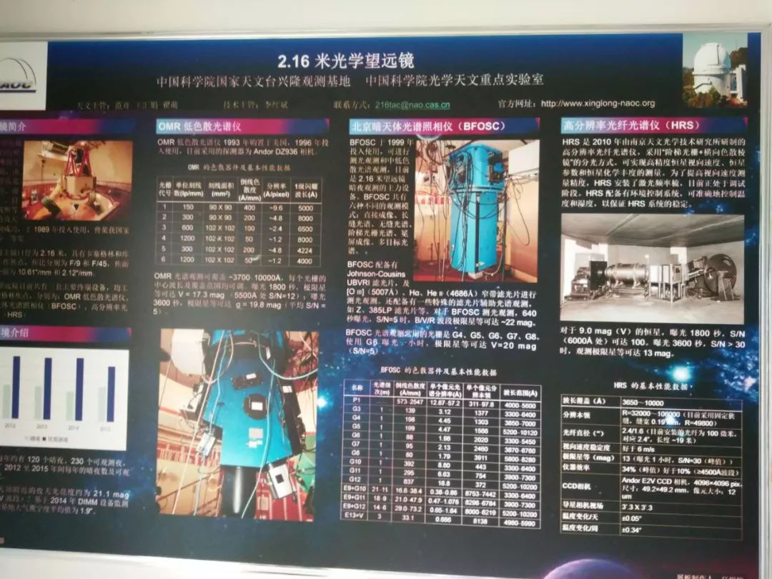 设备概述:兴隆站2.16米望远镜是我国自行研制的两米级光学望远镜,由中国科学院自动化研究所、北京天文台、南京天文仪器厂等单位历时15年联合攻关协作研制成功,于1989年投入使用,曾荣获国家科技进步一等奖。2.16米望远镜集中了光学、机械、电控和自动化多种先进技术于一体,配备了现代化的焦面仪器,是一台两米级的、达到国际先进水平的光学望远镜。2.16米望远镜堪称我国自力更生研制大型精密设备的标志,被誉为中国天文学发展史上的一个里程碑,自1989年至2008年间一直是国内最大、也是远东最大的光学望远镜。