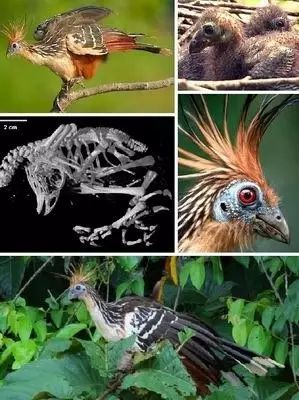 麝雉从某种程度上更像是化石标本,其幼鸟具有与第一鸟化石——始祖鸟相同的特征:它的两个前肢上长有两个爪。如果受到惊扰,只有3天大的小鸟就会跳入水中,再用它们的两个爪子抓住树枝爬回巢中,就像小猴子一样。前肢的爪是一种原始的特征,也是对在湿地环境生活的一种奇特的适应。随着幼鸟的长大,爪就会消失。