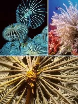 现今的海百合虽然数量非常稀少罕见,但是它们与数亿年前的祖先并没有太大的变化,并且生活方式十分接近:从海水中过滤微型有机物质。