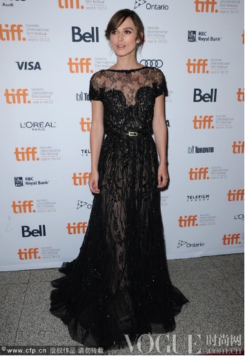 英国女星凯拉·奈特莉身着蕾丝透视长裙,出席电影《安娜卡列妮娜》多伦多首映。