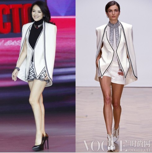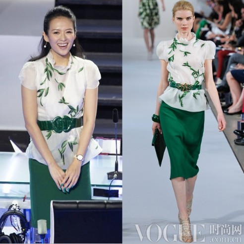 上周五《中国最强音》的开播让大家把注意力都放在了章子怡的身上,她大方得体的表现令人赞赏。节目上她表情丰富,节目外她的穿着也成为喜欢时尚人士的讨论热点。我们搜集了她最近录节目的穿着,并且找出对应的秀场模特图,看看在你心中她最美的是哪个造型。