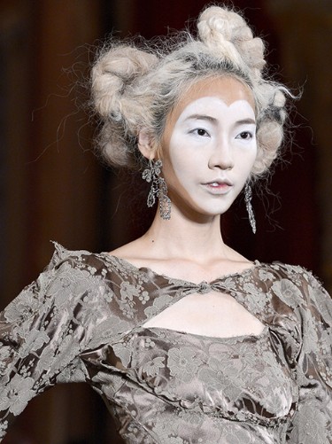 时装上的妆容也不全部都是漂亮的、梦幻的、时髦的,是时候让我们来回顾一下那些T台上古怪的、恐怖的、雷人的美妆了。虽然大多数设计师选择干净漂亮的妆容来搭配自己的设计,但是有些设计师却选择了完全不一样的方式,这些设计师都是出名的爱选择雷人的彩妆来走秀,托好你的下巴,接着往下看吧。