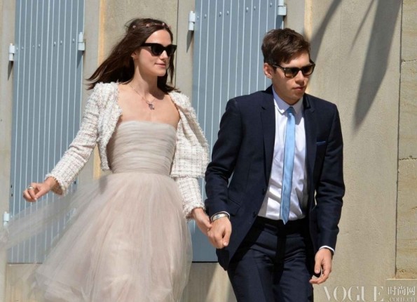 婚礼上凯拉身着由Chanel总监卡尔·拉格菲尔德(Karl