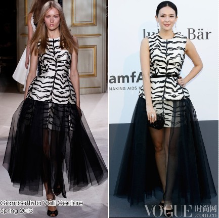 当地时间2013年5月23日,法国戛纳,章子怡、张雨绮、刘雯、亚历山大·安布罗休、C罗女友伊莉娜·莎伊克、帕兹·维嘉、凯莉·米洛等群星云集amfAR戛纳派对,章子怡穿着Giambattista
