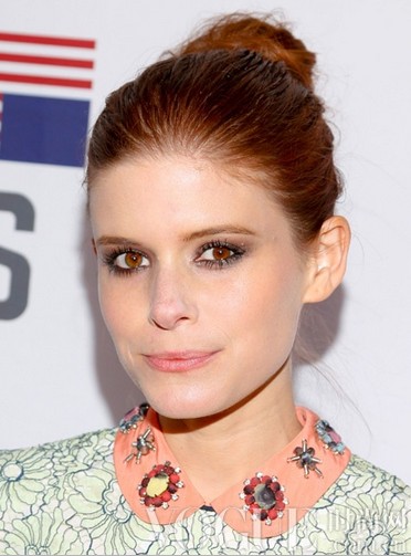 随着温度的升高,光洁清爽的发髻优势越发明显了,当然,也不能只把头发发草草的梳上去了事。Mara的这一款发髻带有精致漂亮的丰盈感,所以看上去非常别致。先用手把所有头发在发冠上系成一个大马尾,然后用鬃毛梳把头发打毛,再用梳子外沿轻轻的梳理整齐;接下来把头发卷成一个发髻,用U型发卡固定;最后把周边零散的头发用手指沿着发线理顺即可,另外,成型后就不必喷增亮喷雾了,展现头发自然的光泽就好了。