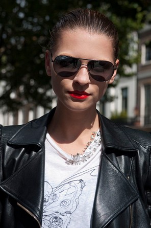 另一个潮流做法就是利用墨镜营造酷感,而用红唇来调和女人味,让整体造型更有层次。