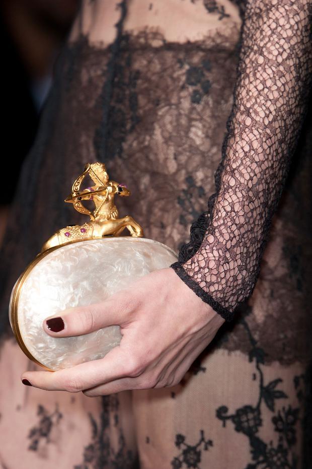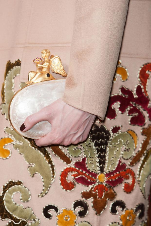 与不大有新意的斗篷轮廓相比,这场秀上最有趣的,你发现是什么吗?那是模特手中以贝壳手包,看起来相似,实质可是十二星座的图腾,貌似我这里没有收集齐,但是老先生用而今年轻人颇爱讨论的星座作为设计细节,这样的创意,会不会掀起一阵新的手包潮流呢?