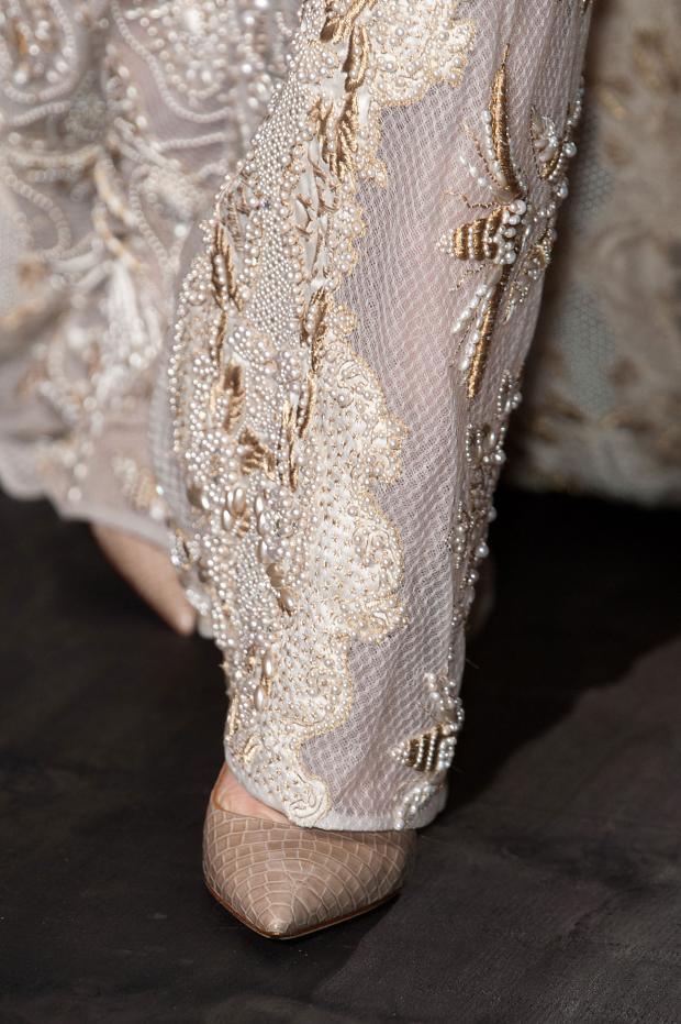 感觉Valentino这场秀就是,将繁琐与简约间隔开来营造出的风格旋律,有的让你沉迷在绣花蕾丝的精工当中,有的让你灿烂在润美光泽当中,有的是对高定传统的坚持,譬如那些奢华礼服,有的是对高定未来的尝试,譬如那些大气套装,无论怎么说,每件都很迎合着秋冬潮流,也体现着对裁剪、材质、细节的讲究。