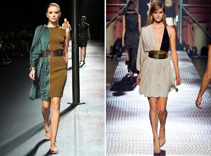 黑格尔有一个很有意思的心理学界定叫正反和阶段,意义在于内心的波澜与现实丑陋的撕扯所呈现出的纠结姿态。正与反的鲜明对比预示着成长过程中现实对人生观偏执的引导,2011和2013春夏Lanvin秀场上两件左右非对称裙装恰到好处的表达了成年后少女波动的心态,权势、金钱的误会让本应健康成长的少女在晃动不安中迫切的寻求生存的平衡。