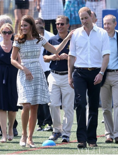着灰白格纹Hobbs连衣裙和威廉王子甜美出行。