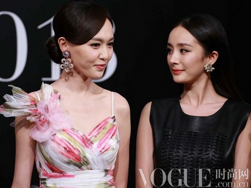 【唐嫣VS杨幂】都是新晋花旦,都是人气颇高的女明星,二人也都选择了花朵造型的耳环,唐嫣的服装配色和耳环相互呼应,整体效果强,而杨幂的黑色礼服仿佛整个人都融在在背景里。