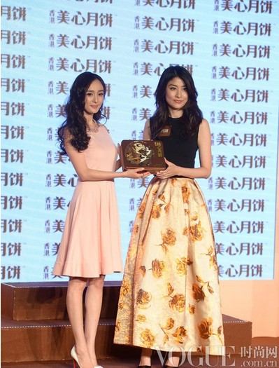 近日,杨幂、陈慧琳现身上海出席某月饼品牌代言活动。杨幂粉裙清新,陈慧琳辣妈金色半身长裙则非常抢眼。两人更是不约而同均以中分大波浪卷发示人,成熟妩媚。