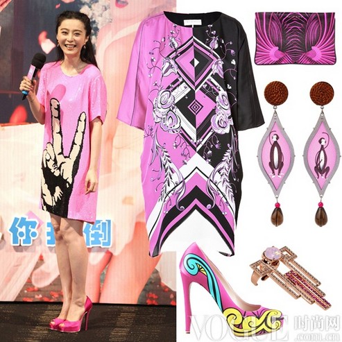 身为时尚女王,范冰冰的这身桃粉色搭配,可谓星光熠熠,大牌十足!俏皮的手指图案诙谐又高调,宽松的版型无论什么样的身材都可以穿搭。对于为七夕约会做准备的女孩来说,除了桃粉色印花裙,一系列足够文艺范儿的印花包袋、图案耳环等,也是你的个性武器。