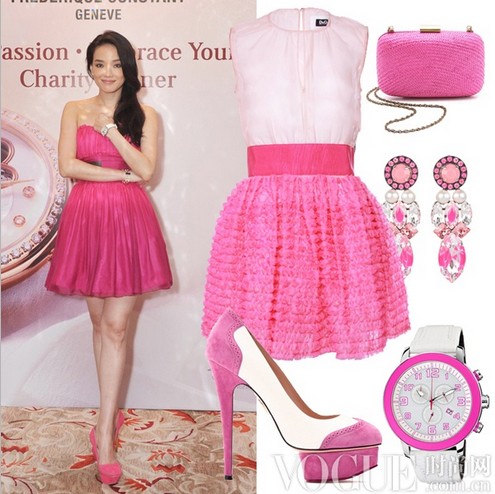 每每现身都令人眼前一亮的舒淇,这次也不辜负大众的期望,一见抹胸蓬蓬公主裙,衬托出她的靓丽风采,膝上长度令双腿修长纤细,偏分的自然卷发浪漫优雅。对于七夕约会的女孩来说,除了蓬蓬公主裙,你也可以选择一款俏丽的桃粉拼色高跟鞋,同样甜美怡人。