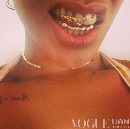 蕾哈娜(Rihanna)新入手的步枪样式牙箍。