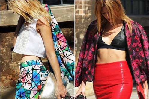 露腰成为这几季设计师玩转的性感地带!这一季的露腰上衣以及内衣外穿的风格成为潮流热点,同时还带动着高腰风格下装的流行,一件露腰上装搭配一条高腰裙,在这一季绝对闪亮。
