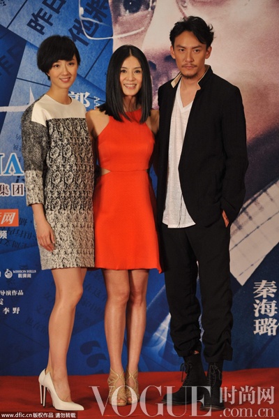 2013年5月12日,上海,杨采妮导演首部执导《圣诞玫瑰》亮相上海。蓝白相间的Bottega