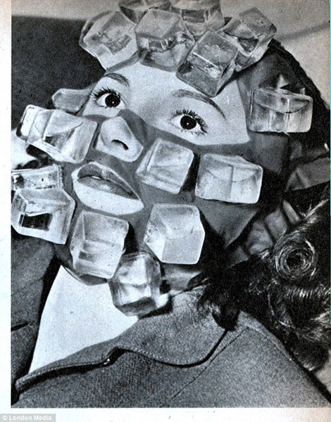这款叫做“宿醉天堂”的面膜上缀满了塑胶冰格,使用前灌满水后放入冰箱冷冻,使用时取出戴在脸上,令人清醒的速度可想而知。这款面膜在40年代爱混派对的好莱坞明星当中相当受欢迎。