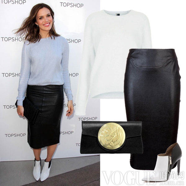 经典的A字皮裙在本季可谓是实用百搭的必备单品,与小外套、短披风、针织套衫,以及印花衬衫搭配都是不错的选择。这里推荐包括Mollie
