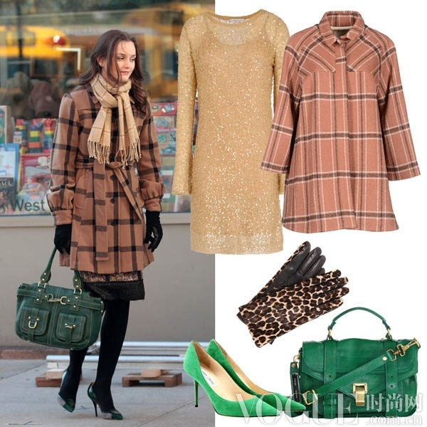 Look3:格纹呢大衣加点睛配饰
