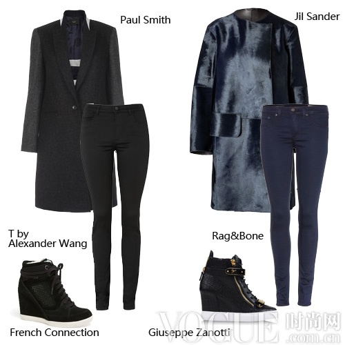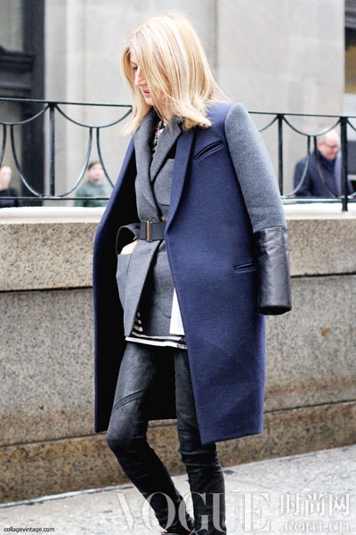 材质和色彩拼接的毛呢外套颇具有设计感,Sarah Rutson非常随意地披在肩上,搭配一条修身的牛仔裤,少了几份女性的妩媚气质多了几份干练与酷酷的阳刚之气。本季大热的运动鞋则是造型点睛之笔。