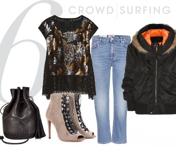 黑色水桶包作为点睛,整个派克大衣look看起来就十分具有潮人范儿。