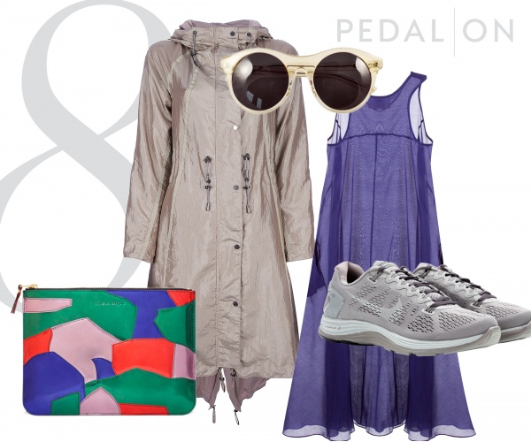 Raeburn银灰色派克外套,搭配Syo Kai紫色长裙,运动风盛行的这个冬季,可以用派克大衣来追一回潮流。