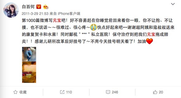 搜索她儿子元宝,大概有247条相关内容,没标“元宝”的晒娃微博更多。阿咩一篇篇地看完,看到一个实在太接地气的妈妈,她没有那么多的育儿经验、养生指南可以分享,分享的都是和普通妈妈一样的快乐与苦恼。开工离家时的难舍难分,儿研所的专家号难挂,工作结束后回家哄睡困难,嘚瑟孩子吃什么都留她一份的专属宠爱,还有那些被孩子教育的感动瞬间。