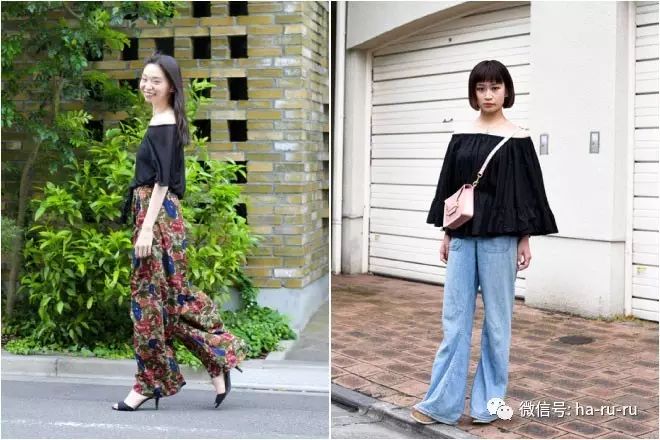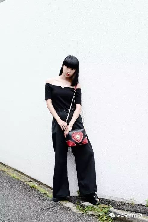 除了开衩露腿之外,16年夏天的潮人们还喜欢露肩。可能真的是天气太热了吧,露肩上衣成为了必买单品。不过元素的时尚达人们为了避免GAL化,基本会选择黑色。像上图这样一身黑的搭配就非常常见,潮且时髦。