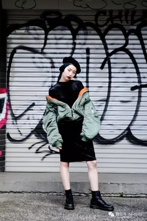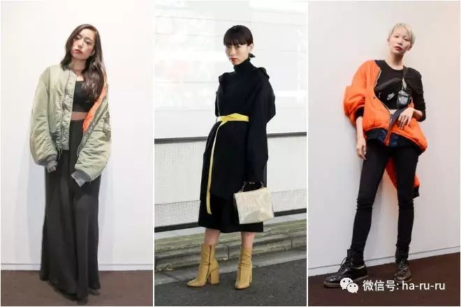 受到16年最火品牌VETEMENTS的设计师Demna Gvasalia担任艺术总监的「BALENCIAGA」2016秋冬系列的影响,将外套搭在身上露出肩的穿法变得特别流行。秀上出现的是运动衣啊衬衫外套之类的,而原宿女子们则喜欢将MA-1飞行外套露肩穿。